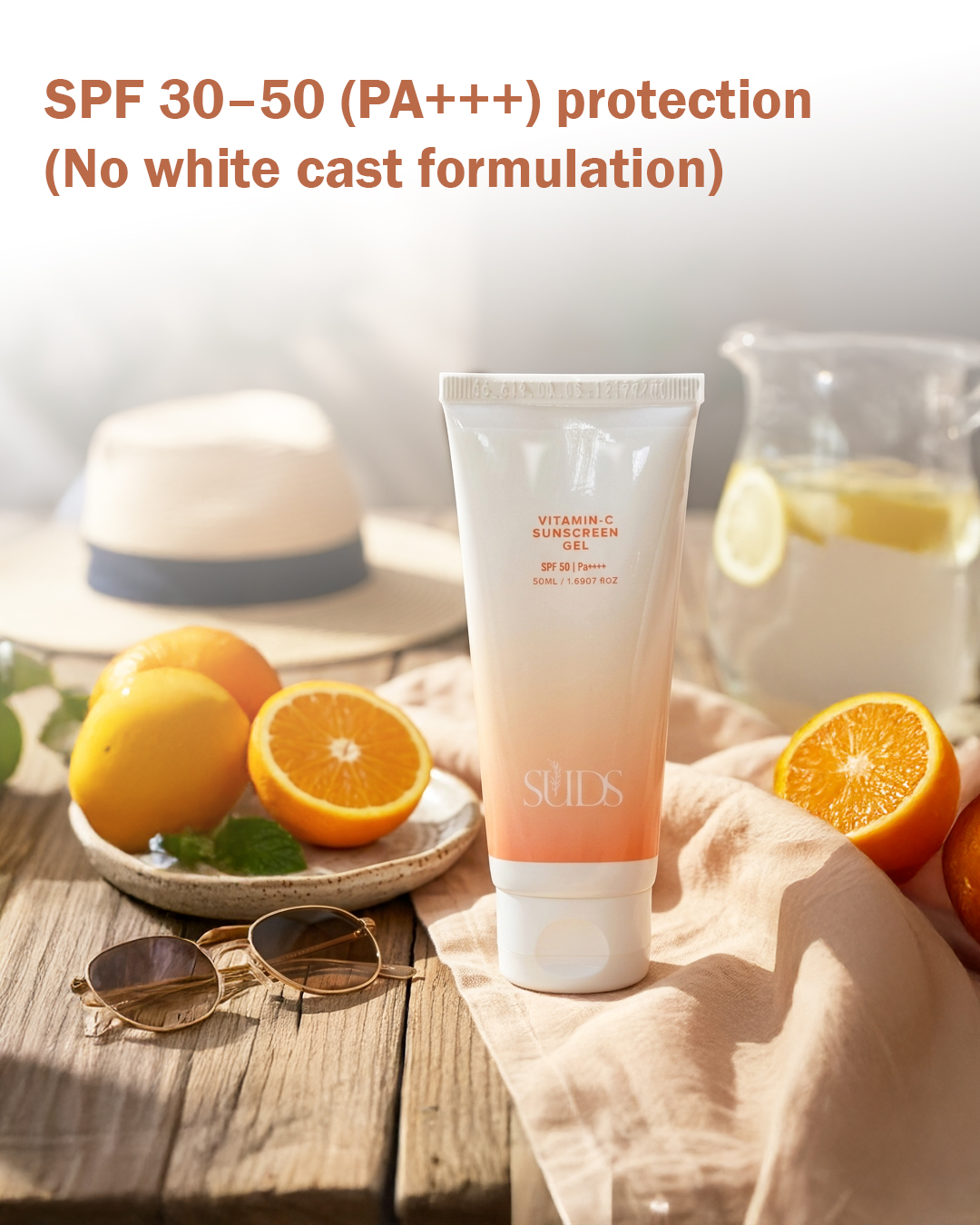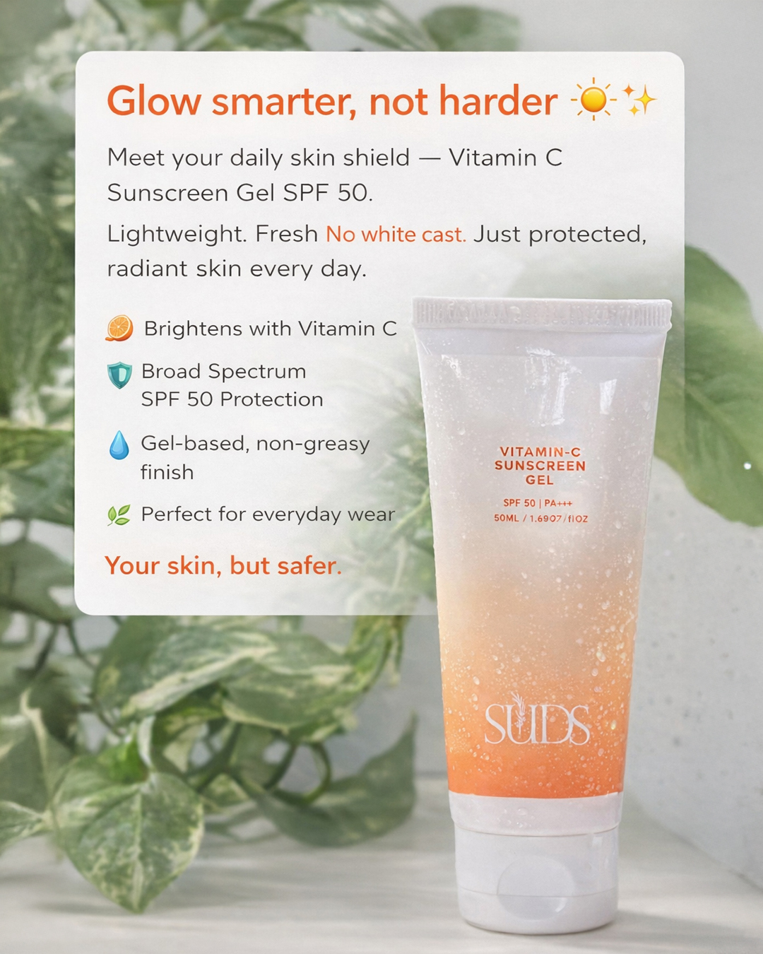 Suds Vitamin C Sunscreen SPF 50++++ is a lightweight, non-greasy sunscreen designed to protect your skin from harmful UVA & UVB rays while boosting your natural glow.